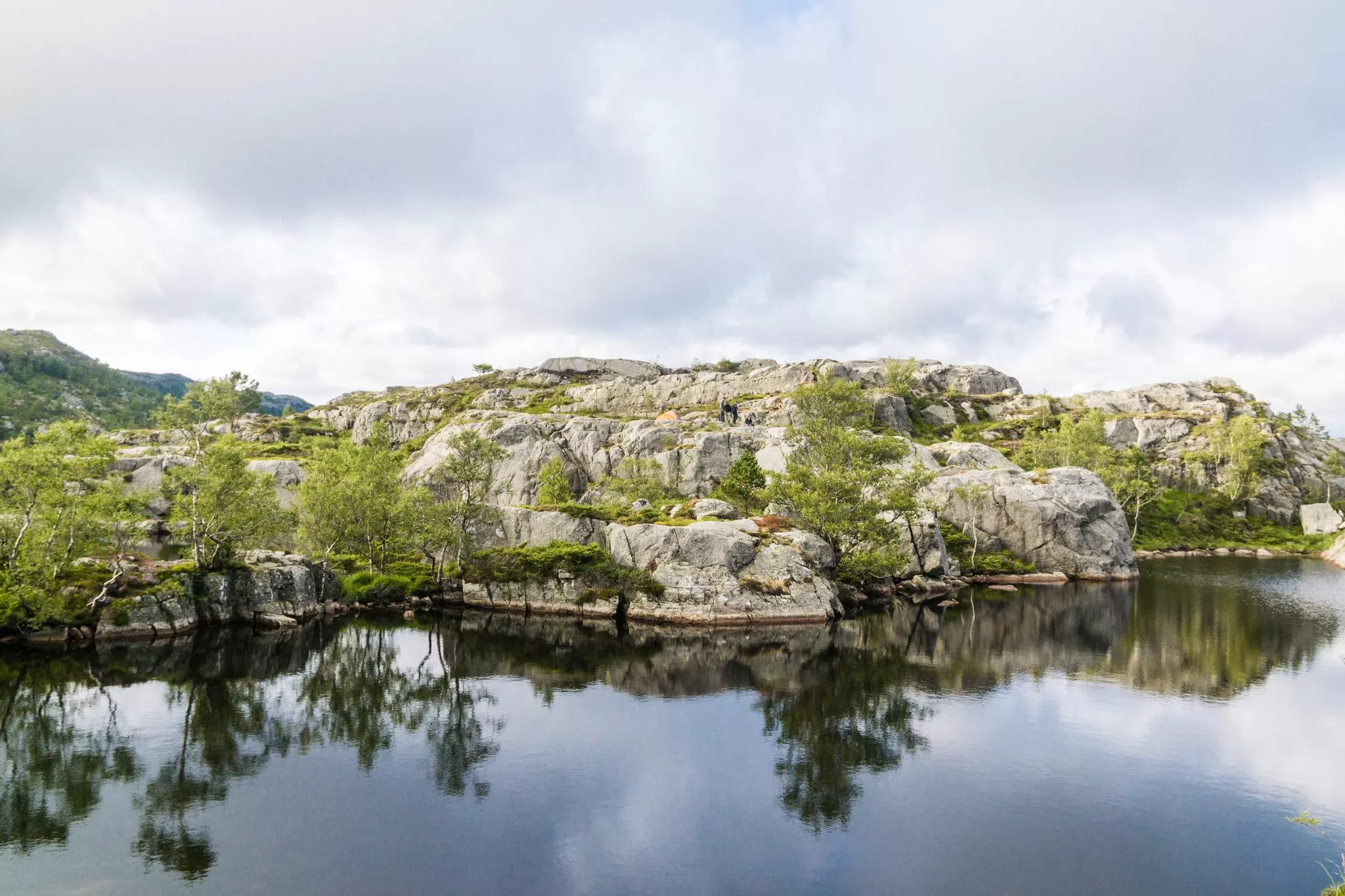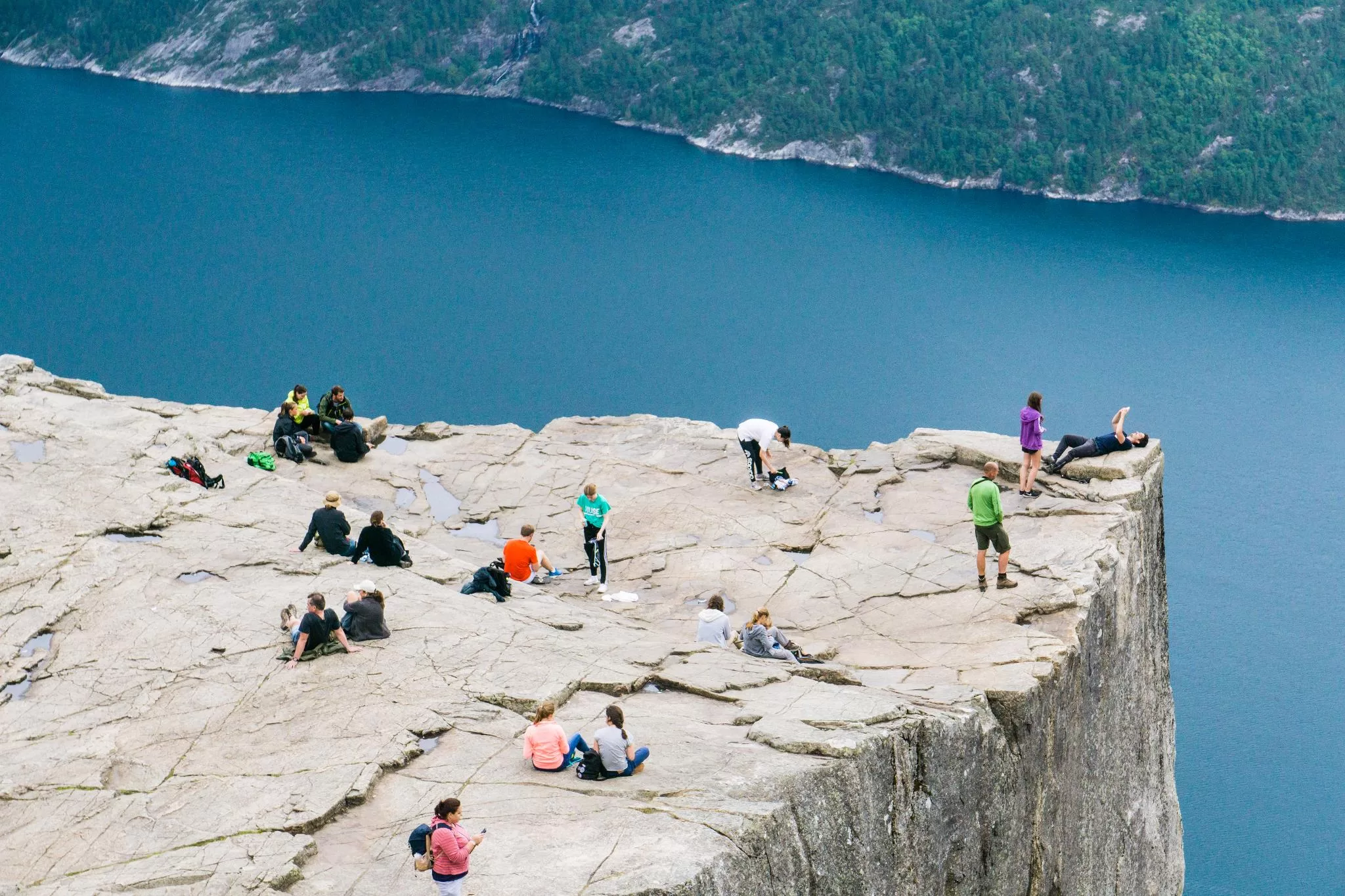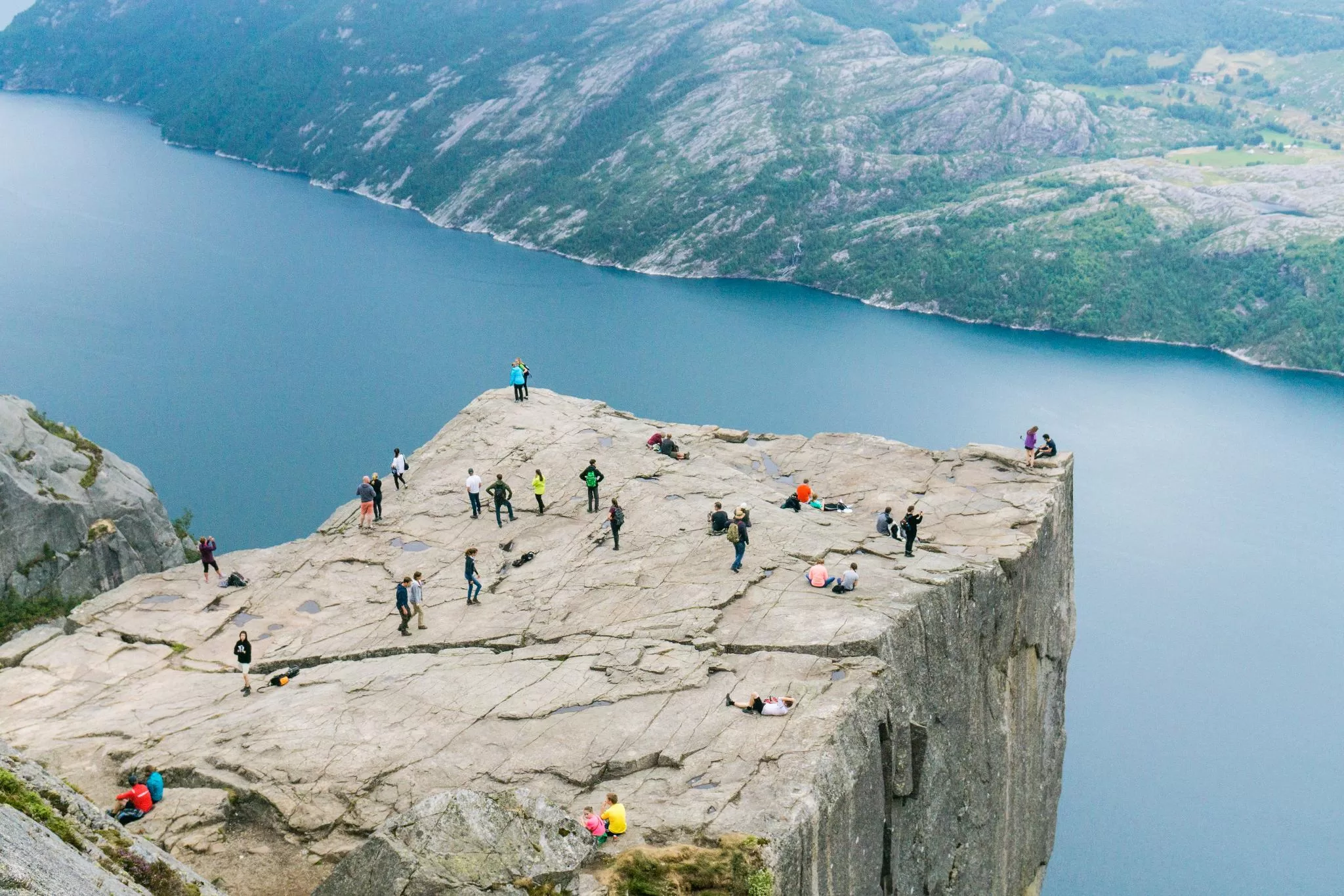 站在聖壇岩上,已能夠完整遠眺呂瑟峽灣。但在聖壇岩石更上方的平坦岩石,有另外幾條健行道路,坐擁更為恢宏雄偉的視野,而且觀光遊客更少、散步起來更愜意。