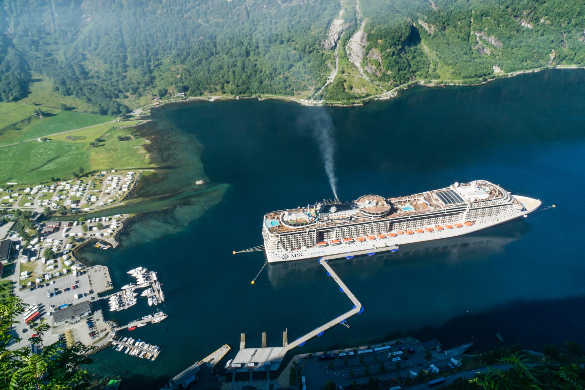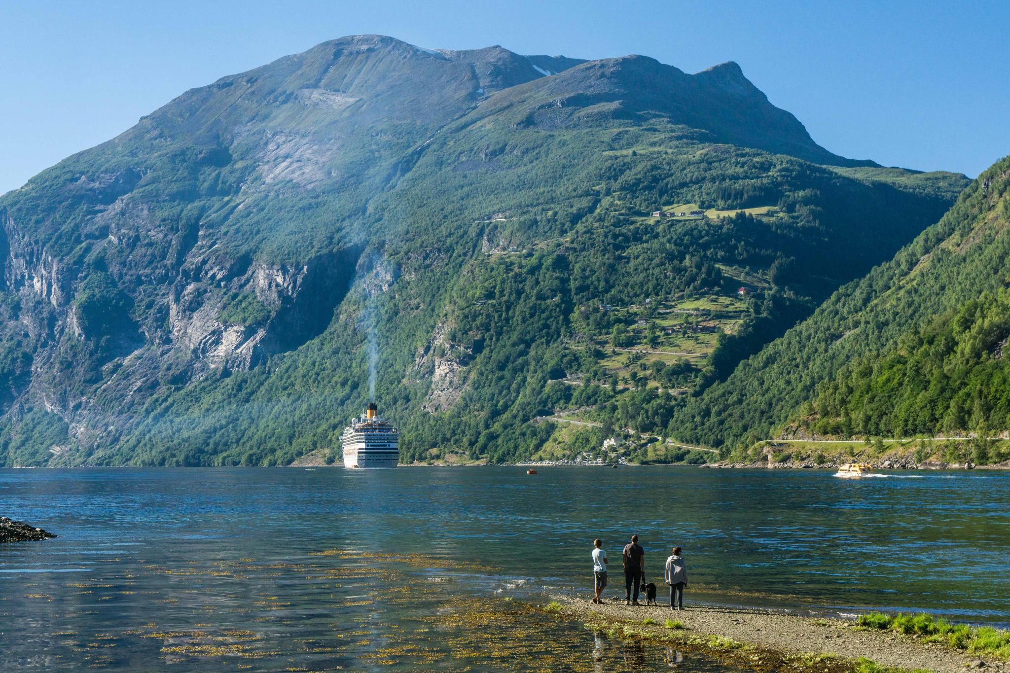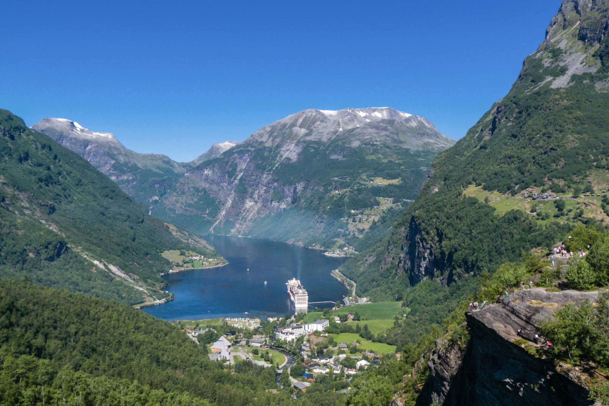 蓋倫格周邊群山環繞,不乏許多高處俯瞰的瞭望觀景臺,一顯自然的壯闊;但是,這一趟造訪蓋倫格,最令我印象深刻的景像,卻是來自於峽灣底部的Geiranger小鎮。從峽灣邊海景第一排望去的視野,或許平易近人,但卻能感受蓋倫格峽灣時時刻刻的變化。你可以在海邊呆坐一下午,看壯闊的豪華郵輪緩緩駛入又駛出、看旅人乘著獨木舟搖櫓過江、看著海鳥劃過水面波紋嬉鬧。這是一幅如詩畫裡出現的壯麗風景,卻是最真真實實地呈現在眼前。