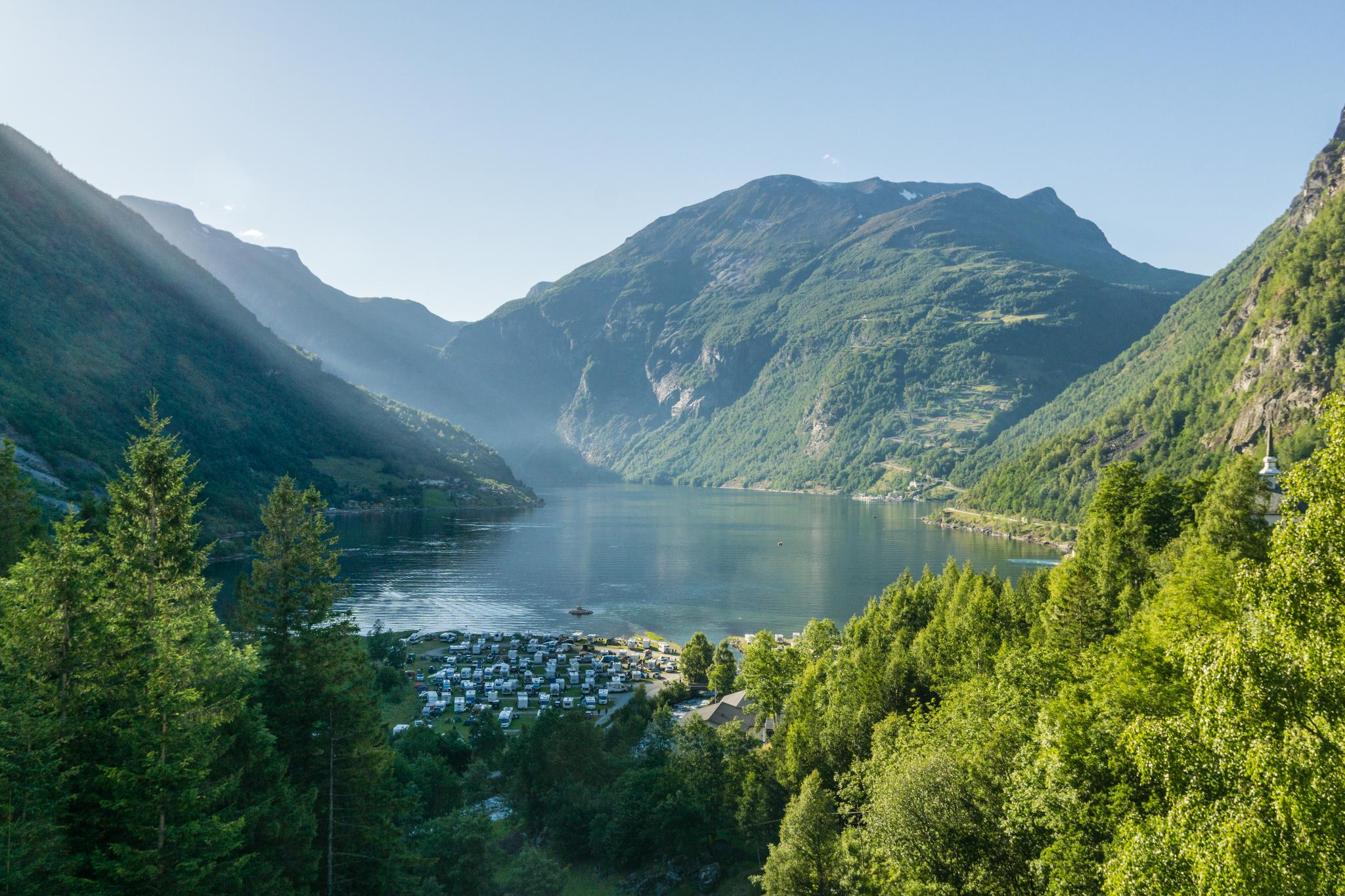 比起Geiranger小鎮的熱鬧非凡,位於蓋倫格峽灣南壁的Homlong小鎮就顯得幽靜許多,從這裡望去峽灣底部的景色更是有種與眾不同的風味。Homlong小鎮聚集許多露營區,因為較少為觀光客所知,這裏沒有對岸的人聲鼎沸,呈現出悠然寧靜的氛圍,會來到這裡的多半是熟門熟路的健行客與露營客。或者換種說法更能詮釋得到味:如果說,到訪Geiranger小鎮是種觀光;那麼,駐足Homlong小鎮,是種生活。