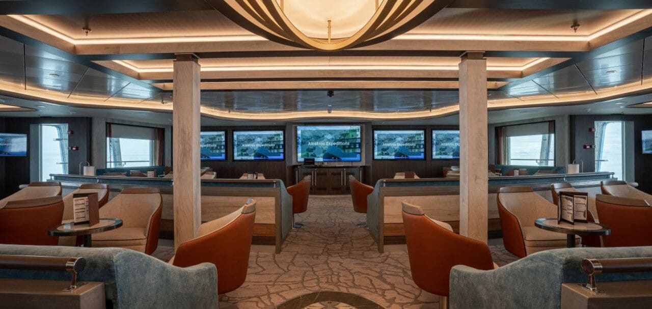 全船共有 94 間舒適客艙與套房,每間皆可欣賞無遮蔽的海景,大多數房型更配有私人陽台。毫無疑問的海洋信天翁號已成為全球最受歡迎的探險郵輪之一。與其姊妹船海洋勝利號一樣,船上設有兩間餐廳、養生區、Albatros 北歐酒吧、戶外甲板用餐區、現代化的講座廳,以及其他先進設施。