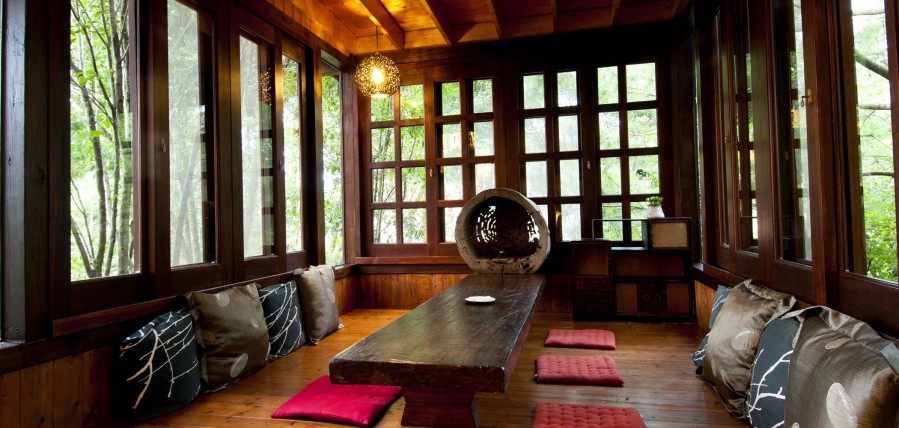 位在南投的「秋山居」特色在园区内的浓浓唐风以及大片玻璃窗美景,加上使用在地新鲜食材、工法细緻、摆盘诗意的无菜单佳餚,提供中国风的奢华享受。