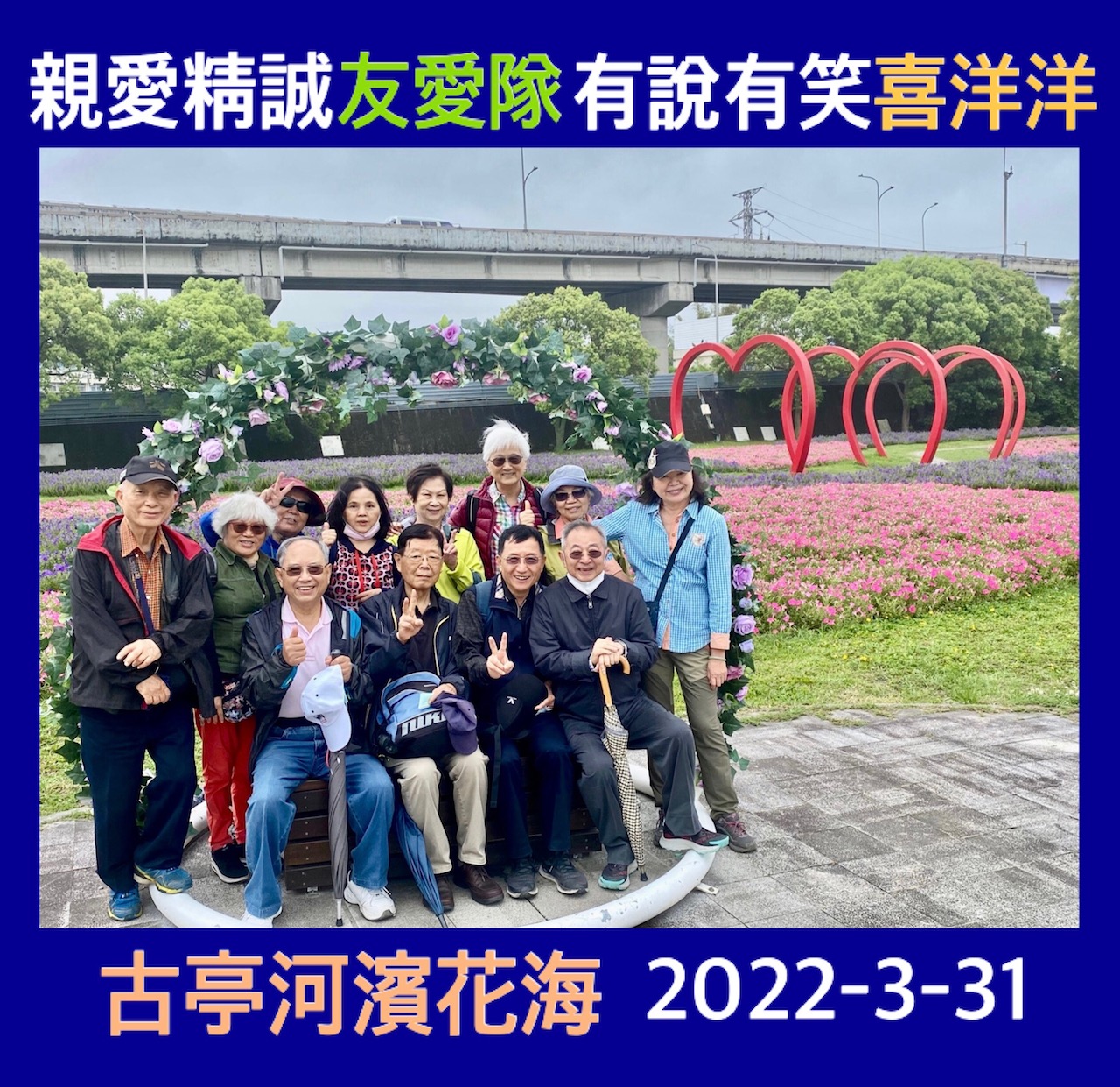 下午下午隨著「友愛健行美食隊」二時三十分,在捷運公館站4號出口集合。由羅斯福路四段24巷進入,經過自來水博物館,走到路底即是河濱步道入口,再走訪「2022古亭河濱公園花海」(於1月15日開跑,花期視花況而定,預估可到3月15日),由香堇菜、一串紫、羽葉薰衣草等3萬盆草花鋪陳的花海大受歡迎,很幸運今天仍春回大地百花開,只是天公不作美,陰霾罩頂,